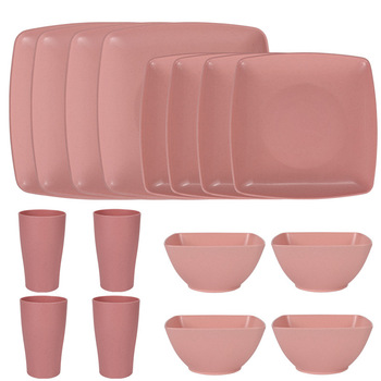 Multi-Color Unbreakable Wheat Straw Dinnerware Set Outdoor Tableware Fruit Dural Plastic Flatware Including Soup Bowl Mug
